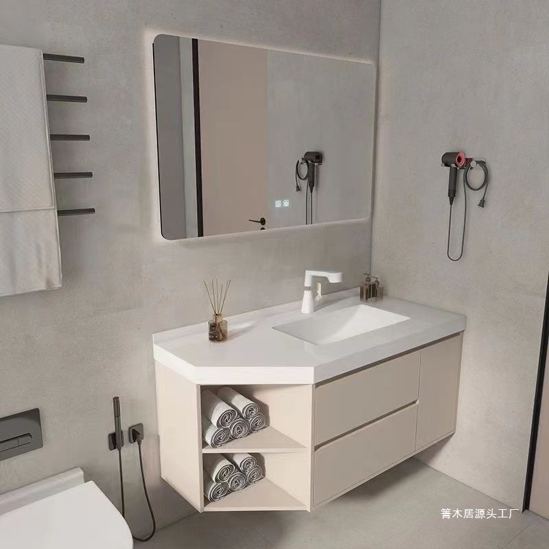 Lemari Kamar Mandi Satu Pintu Lemari Kamar Mandi Banyak Lapisan Baskom Kayu Solid Papan Batu Panas Bengkok Terintegrasi Lemari Kamar Mandi Hotel Homestay