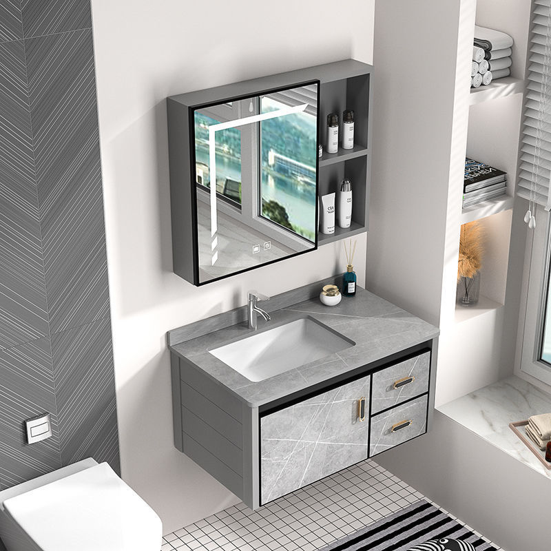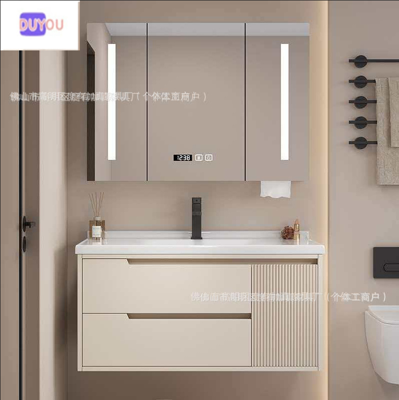 Kombinasi Lemari Kamar Mandi Sederhana Meja Cuci Tangan Keramik Baskom Cuci Wajah Lemari Cermin Cerdas Rumah Tangga