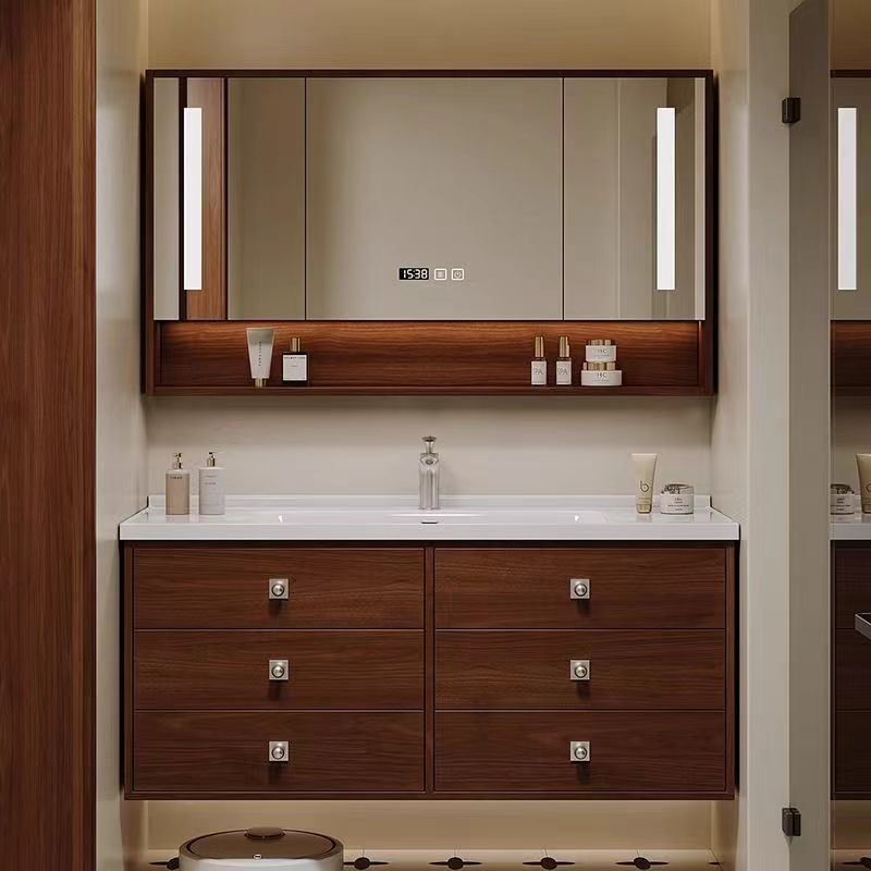 Set Cermin Cerdas Keramik Anti Trendi dan Anti Jamur Kayu Solid Banyak Lapisan Lemari Kamar Mandi Kombinasi Keramik