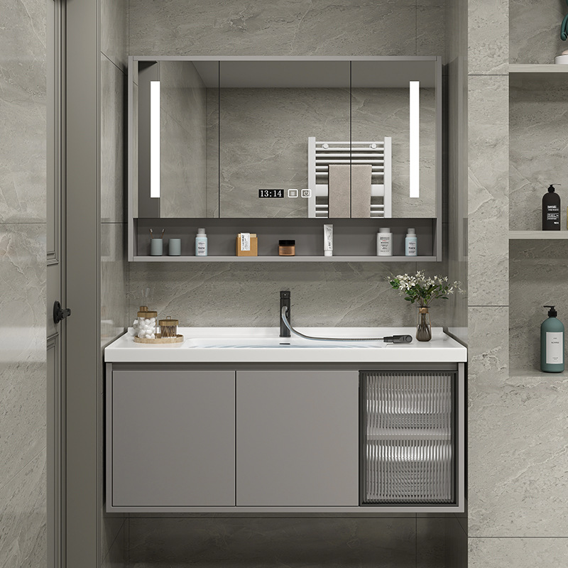 Kabinet Kamar Mandi Aluminium Luar Angkasa Sisi Sempit Kabinet Kamar Mandi Meja Cuci Keramik Terpadu Kamar Mandi Kombinasi Tipe Kecil Meja Cuci Tangan