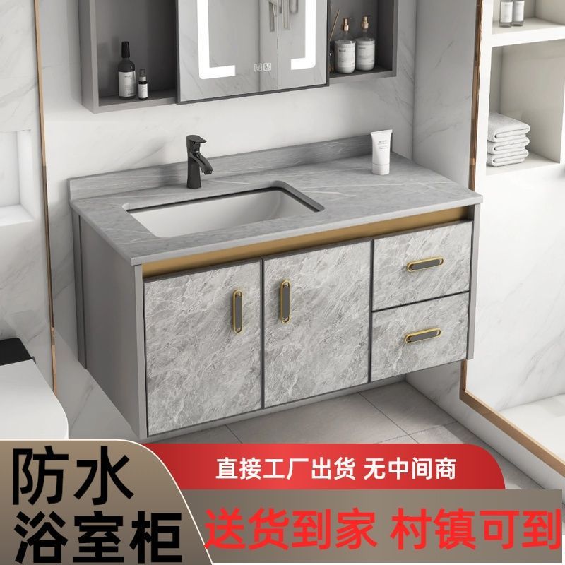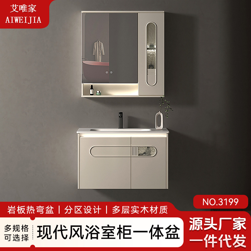 栩沅颖纳米岩石一体简约浴室柜洗手洗脸盆组合卫浴洗漱台智能镜柜