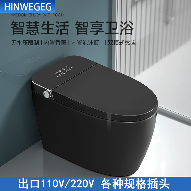 Outlet Lintas Batas Toilet Cerdas Warna Hitam Penutup Otomatis Satu Tubuh Siphon Toilet Tanpa Batas Tekanan Air 110V