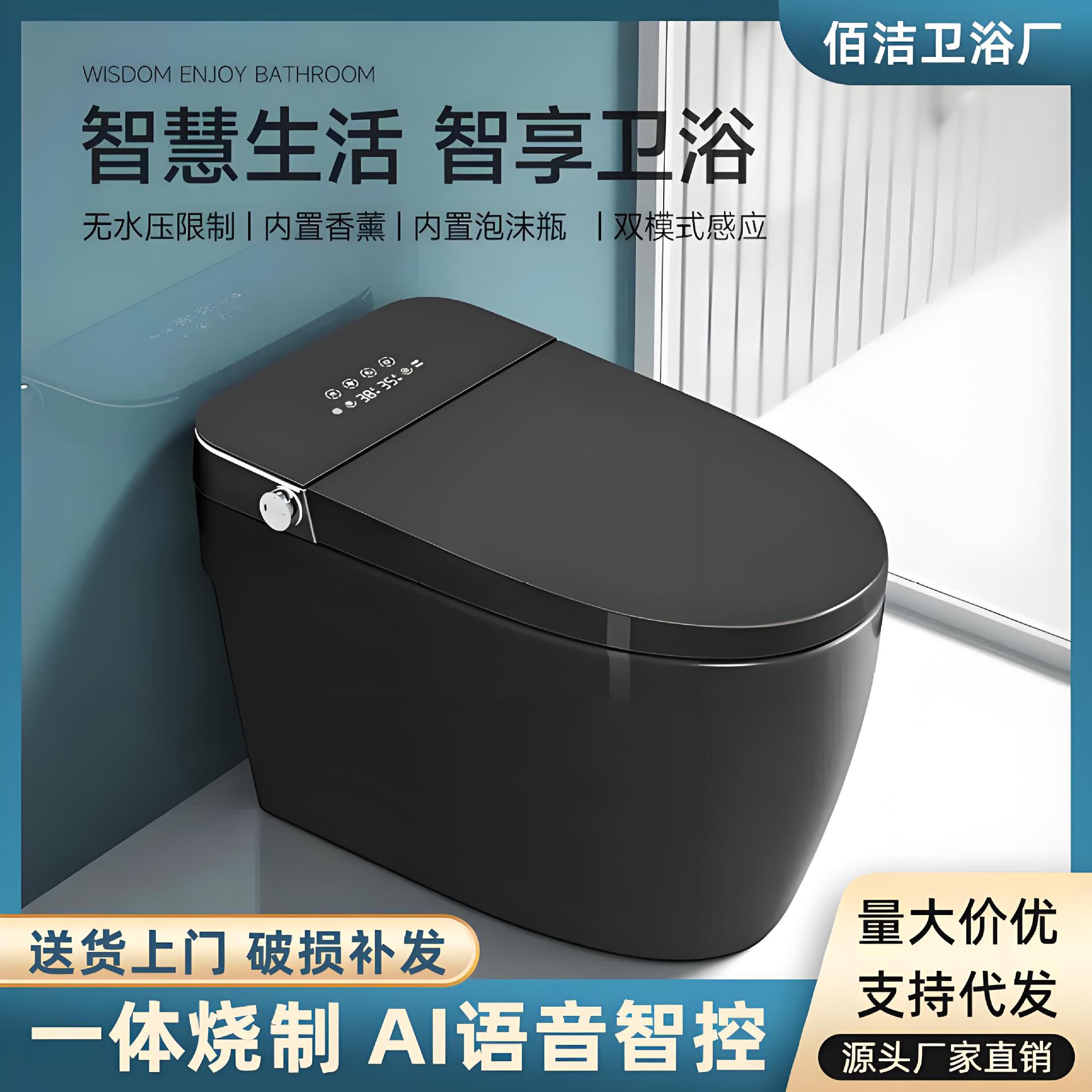 Toilet Cerdas Otomatis Multifungsi Rumah Tangga Keramik Satu Tubuh Tanpa Batas Tekanan Air Perisai Gelembung Suara Panas