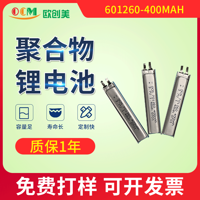 Lampu kabinet baterai lithium polimer 601260-400 lampu induksi lampu belakang pena perekam baterai baterai vibrator baterai