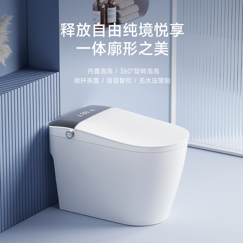 Toilet Cerdas Otomatis Multifungsi Rumah Tangga Keramik Satu Tubuh Tanpa Batas Tekanan Air Perisai Gelembung Suara Panas