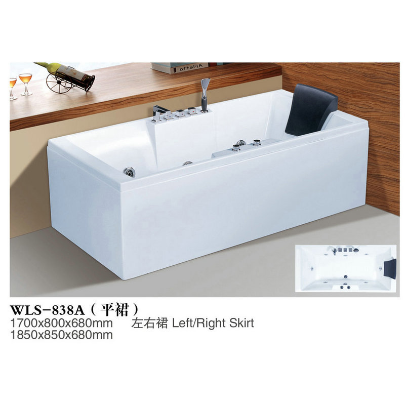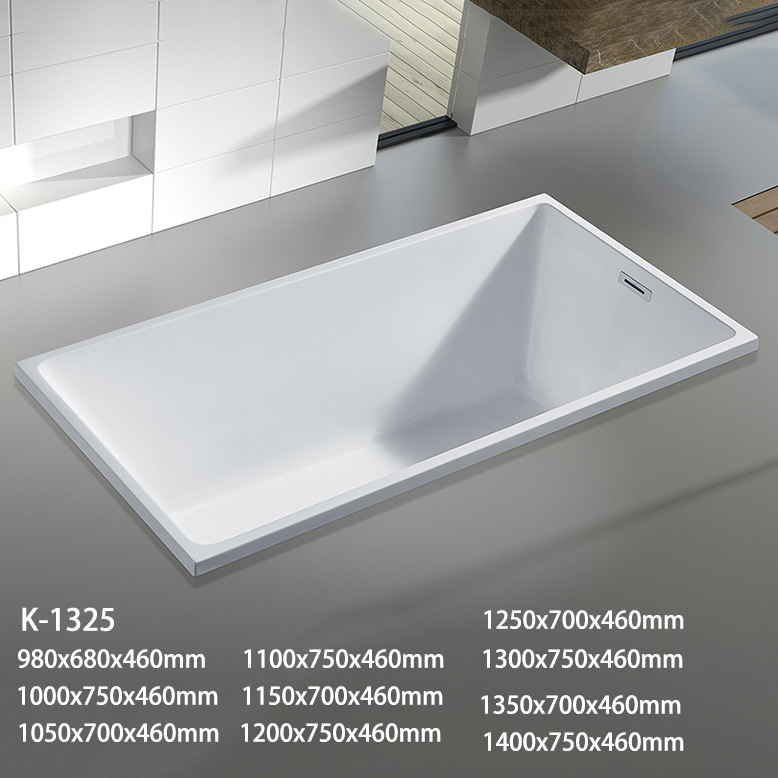 Bak mandi hotel dalam stok, ukuran penuh akrilik bak mandi sisi lurus dinding persegi independen