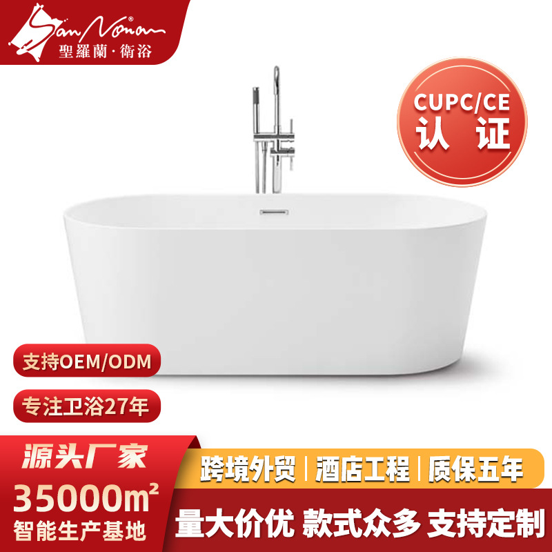 Nordic sederhana oval akrilik independen bak mandi terintegrasi tepi tipis silinder kosong pabrik penjualan langsung dapat dilengkapi dengan lima buah