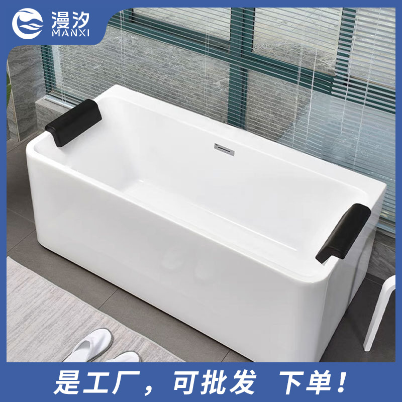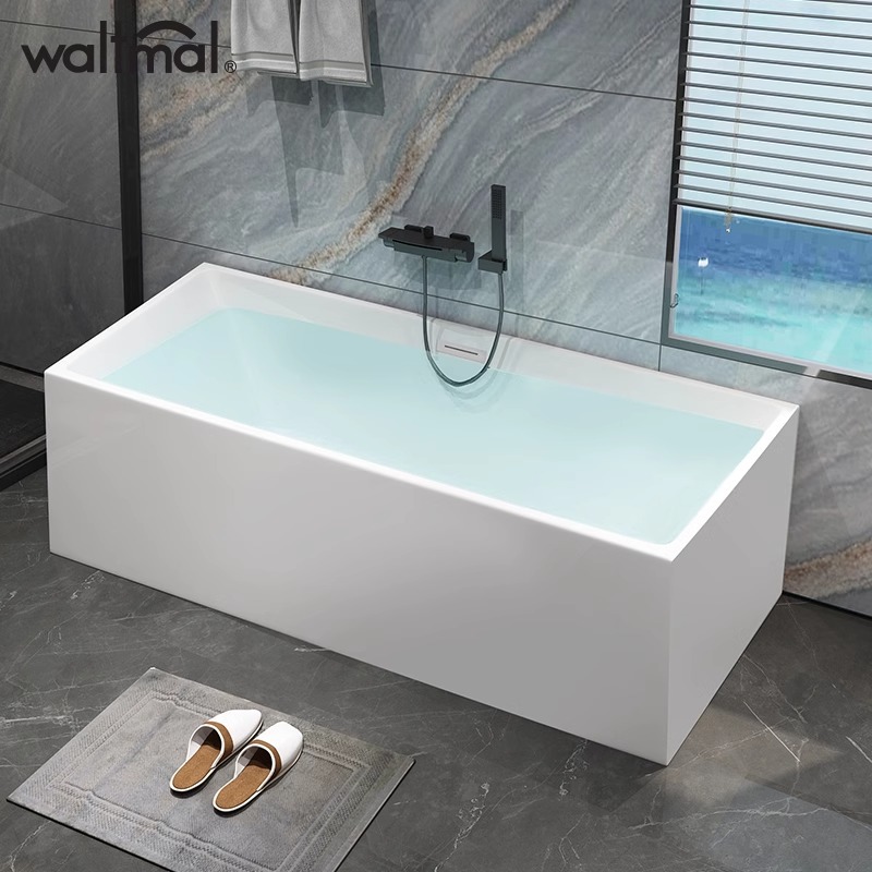Watma bak mandi akrilik independen, bak mandi persegi tepi tipis ringan sederhana untuk dewasa apartemen kecil