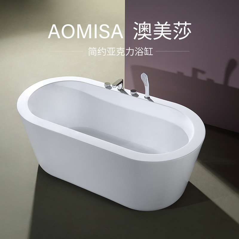 Bak mandi berdiri bebas, bak mandi akrilik kamar mandi rumah tangga Oval pasangan datar kecil bak isolasi dewasa
