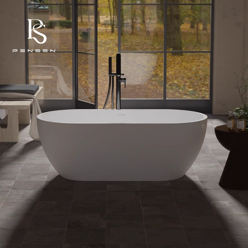 Bak mandi batu buatan untuk apartemen kecil, berdiri sendiri, tepi tipis, berbentuk oval, cocok untuk hotel dan rumah tamu, bak mandi trendi untuk perdagangan lintas batas.