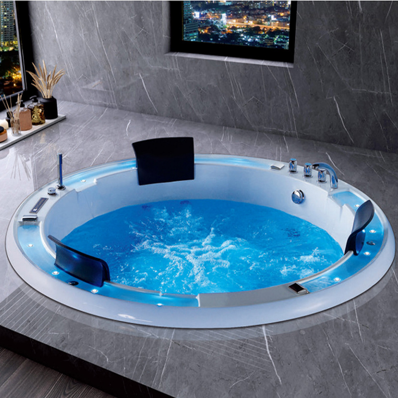Bak mandi spa dalam ruangan silinder tanam, bak mandi hotel pijat selancar akrilik bulat besar