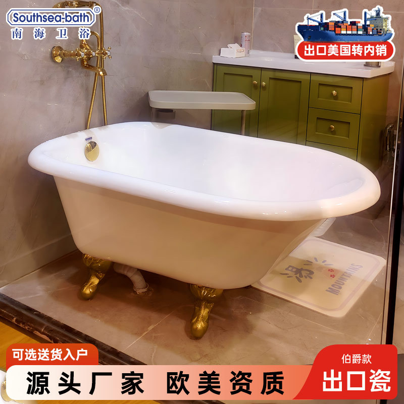 Nanhai besi cor kamar mandi enamel, bak mandi rumah tangga, apartemen kecil Jepang, gelembung dalam tunggal, bebas pemasangan