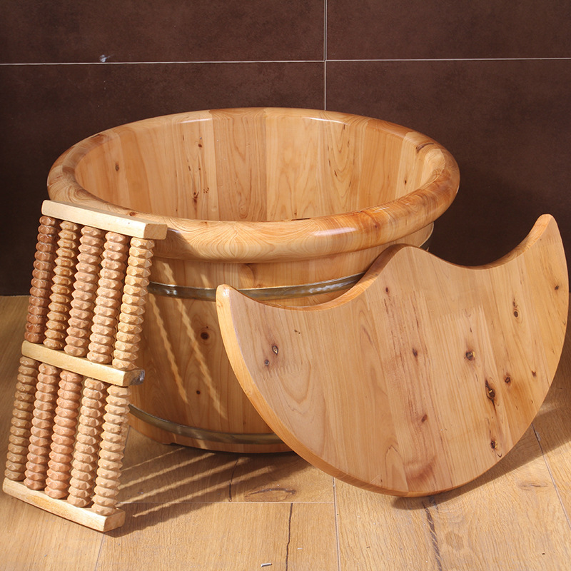 Pasokan Produsen Bak Mandi Kaki Kayu cedar 26 Tinggi Sisi Bulat Baskom Kaki Rumah Tangga Bak Mandi Kaki Kayu Ember Kayu