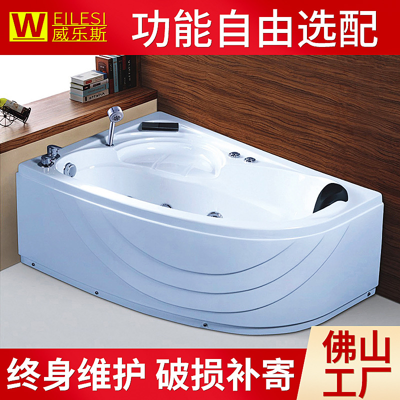 Bak mandi pijat segitiga 1.2 m, bak mandi isolasi akrilik bentuk kipas dengan pedal