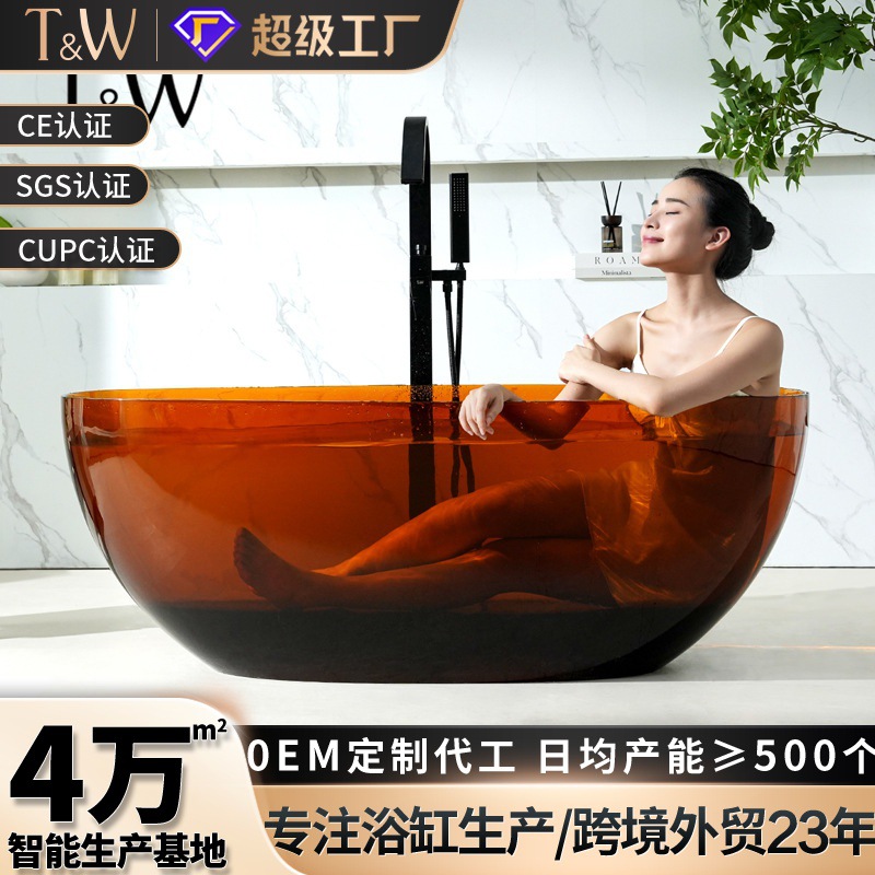 Bak mandi oval transparan dari resin batu buatan warna-warni kristal untuk penggunaan rumah, B&B, hotel, penjualan langsung pabrik untuk perdagangan luar negeri lintas batas