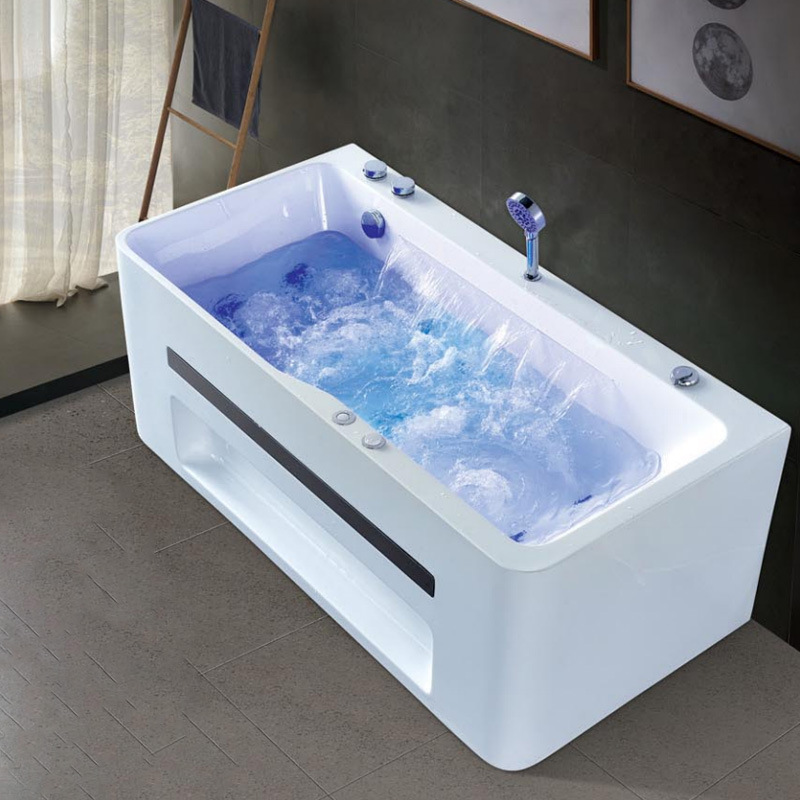 Bak mandi akrilik besar, bak mandi pijat berdiri bebas, bak mandi SPA, kolam rendam dengan suhu konstan, bak mandi pintar dengan gelembung warna-warni