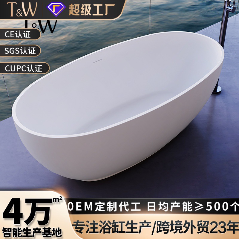 Bak mandi batu buatan untuk penggunaan di rumah, terintegrasi dan berdiri sendiri, berukuran kecil, berbentuk oval, tepi tebal, cocok untuk homestay dan hotel, penjualan langsung dari pabrik ekspor.