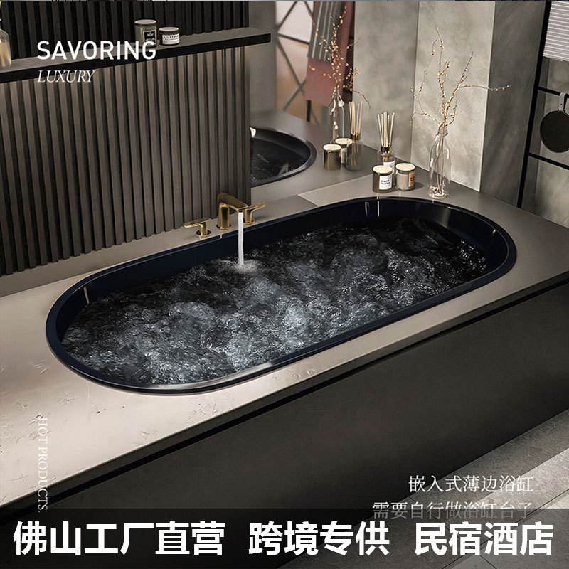 Tertanam gaya Jepang mandi apartemen kecil elegan hitam Rumah hotel jaring merah terisolasi bak mandi akrilik 1.2-1.8 m