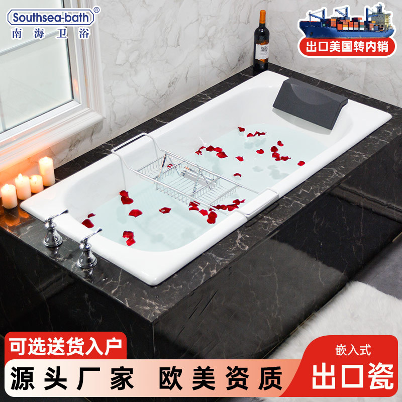 Nanhai bak mandi besi cor enamel, bak mandi Jepang tanam biasa untuk kamar mandi dewasa