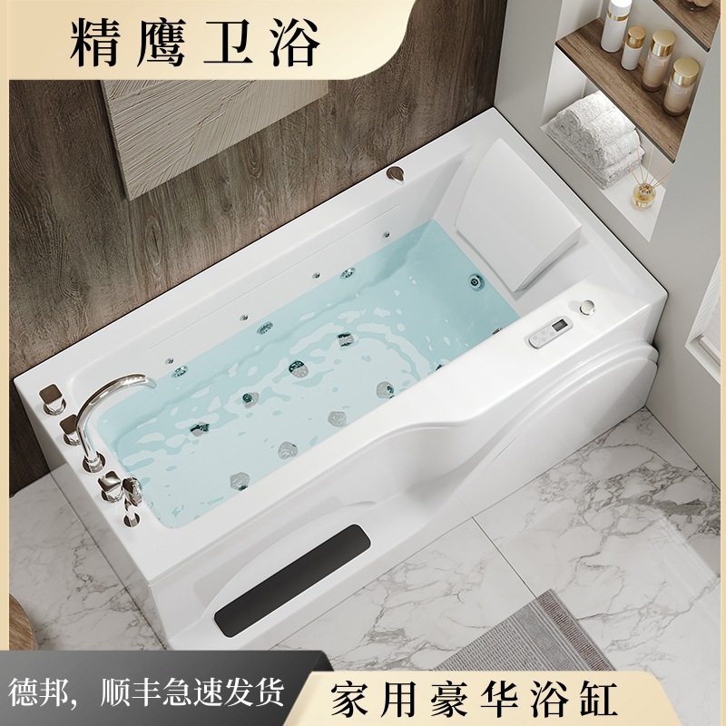 Bak mandi akrilik rumah tangga, rok dua sisi independen apartemen kecil, bak pijat tepi tipis terintegrasi 1.1-1.7 m