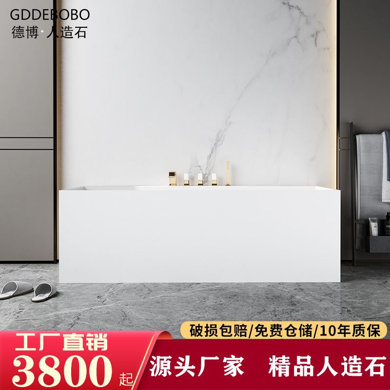 Bak mandi batu akrilik minimalis Modern, bak mandi tepi tipis terintegrasi, bak mandi independen dewasa rumah tangga mulus