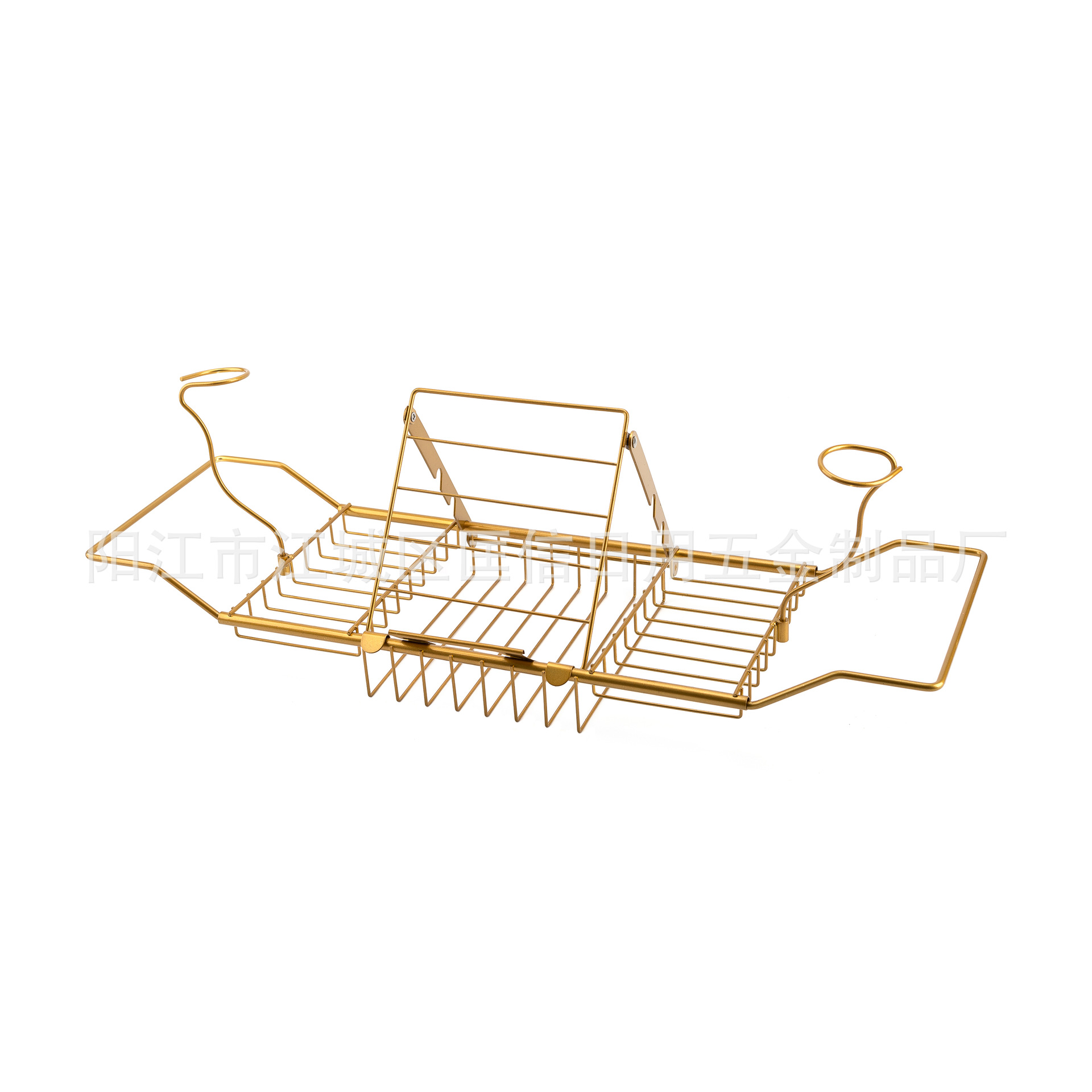 Rak bak mandi perak mawar emas, rak penyimpanan kamar mandi nikel hitam, rak anggur dapat ditarik, rak pemegang ponsel tablet IPAD
