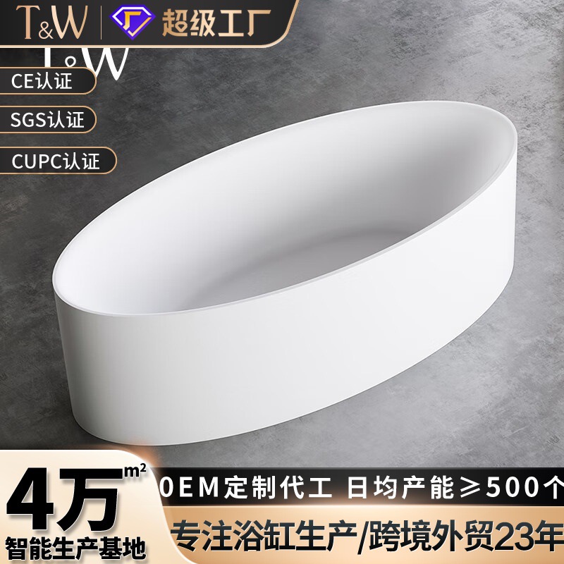 Bak Mandi Sisi Tipis Oval Akrilik Bak Mandi Satu Tubuh Yang Sangat Besar Yang Tidak Berbadan Sendiri Hotel Ekstra Tebal Model Perdagangan Luar Negeri 1,7 m