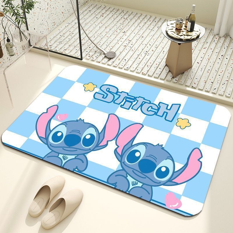 卡通浴室地垫史迪仔家用卫生间软硅藻泥吸水速干垫厕所门防滑地垫