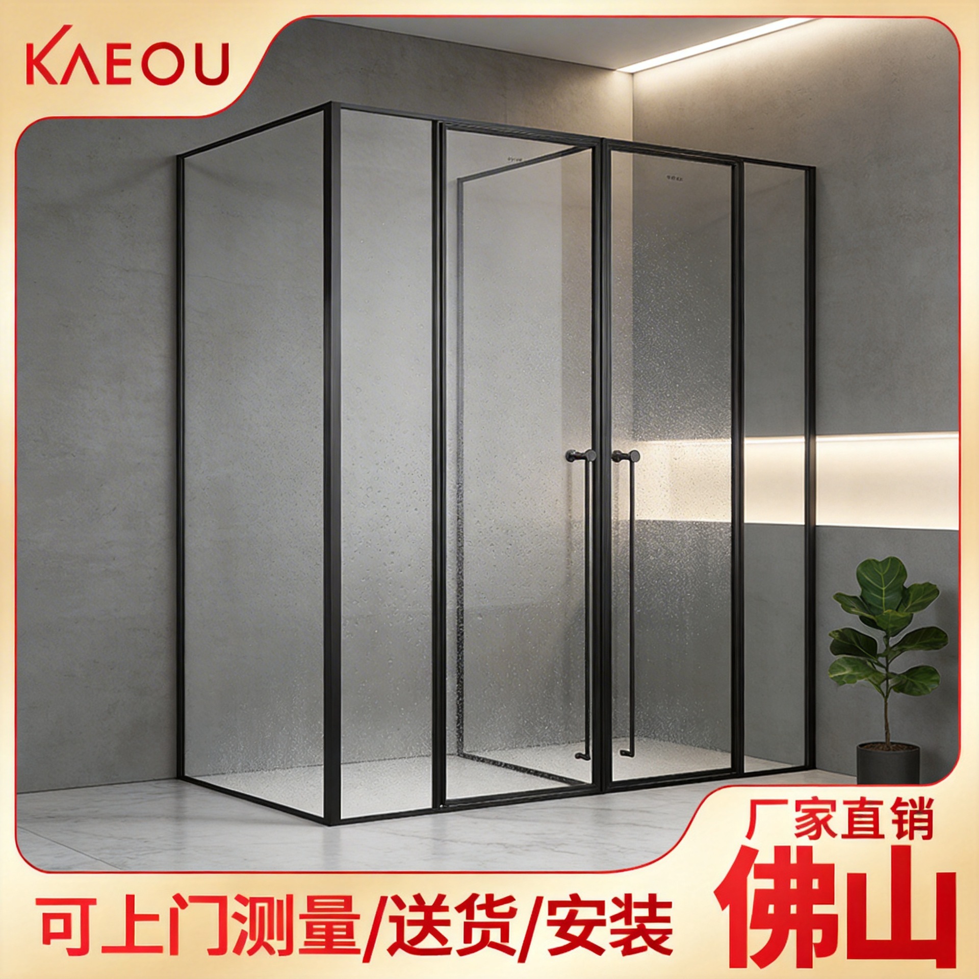 Grosir Pabrik kamar mandi hitam sederhana satu baris layar kaca kamar mandi partisi bisu kustomisasi kamar mandi