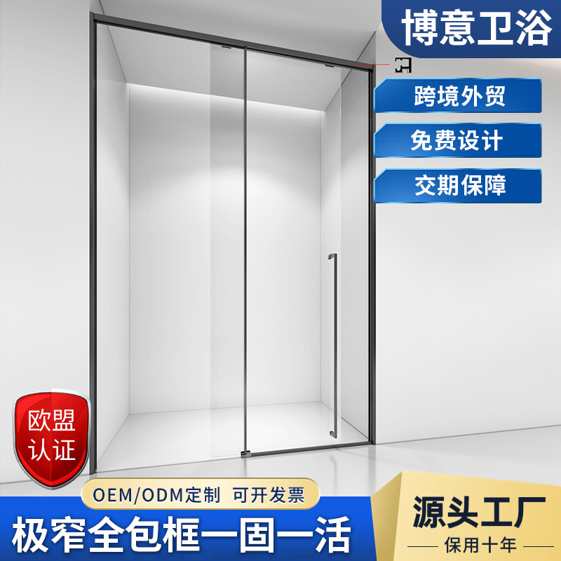 Modern minimalis satu garis kamar mandi Hotel B & B kamar mandi partisi kaca rumah tangga persegi panjang pintu mandi grosir