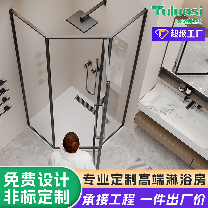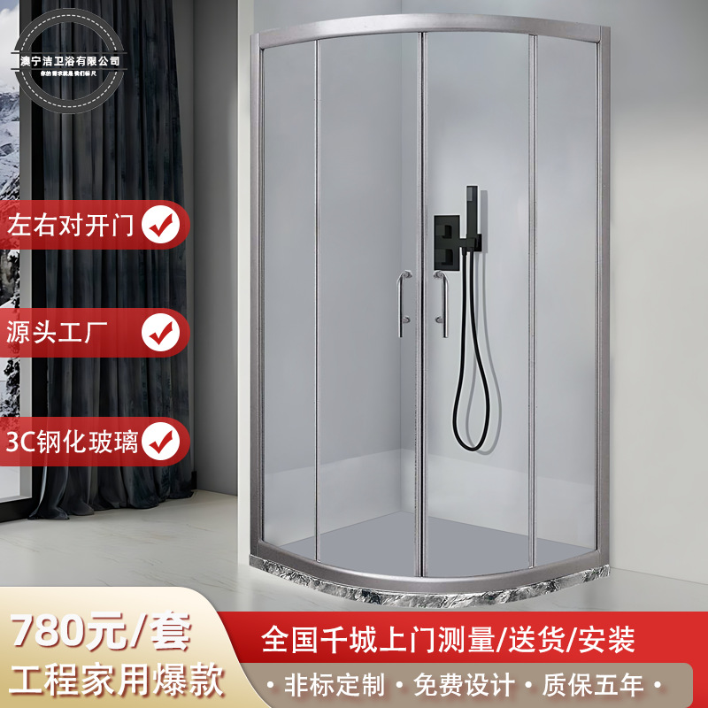 Aoningjie teknik keseluruhan ruang Pancuran arc berbentuk kipas pemisah basah dan kering kaca kamar mandi kustomisasi partisi kamar mandi
