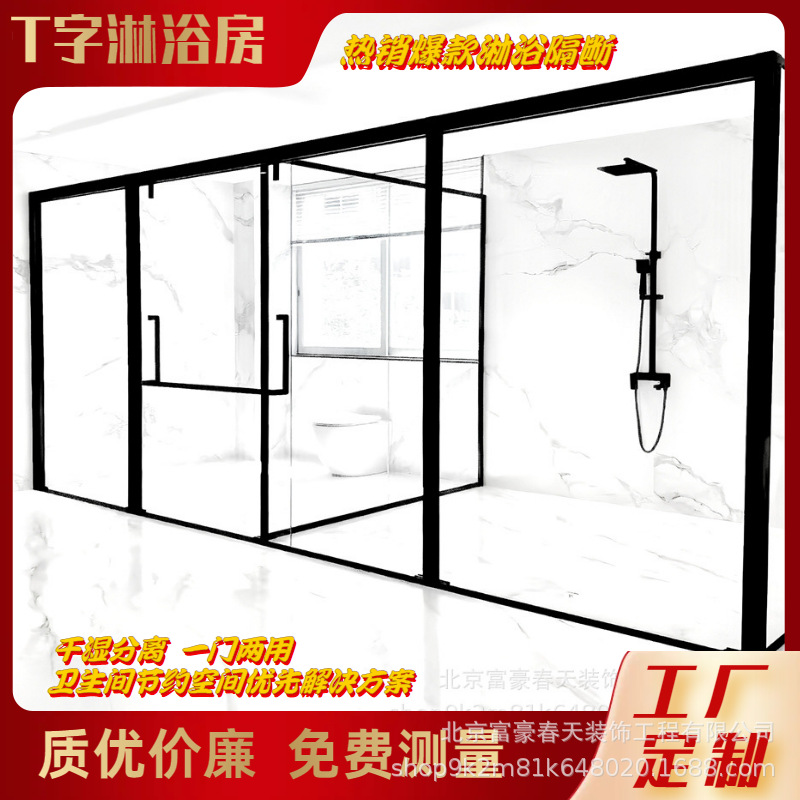 T-berbentuk integral pemisah ruangan shower terintegrasi basah dan kering pemisah sederhana kamar mandi kamar mandi pintu kaca