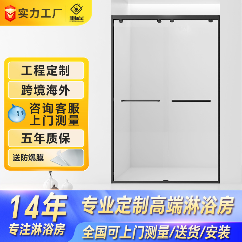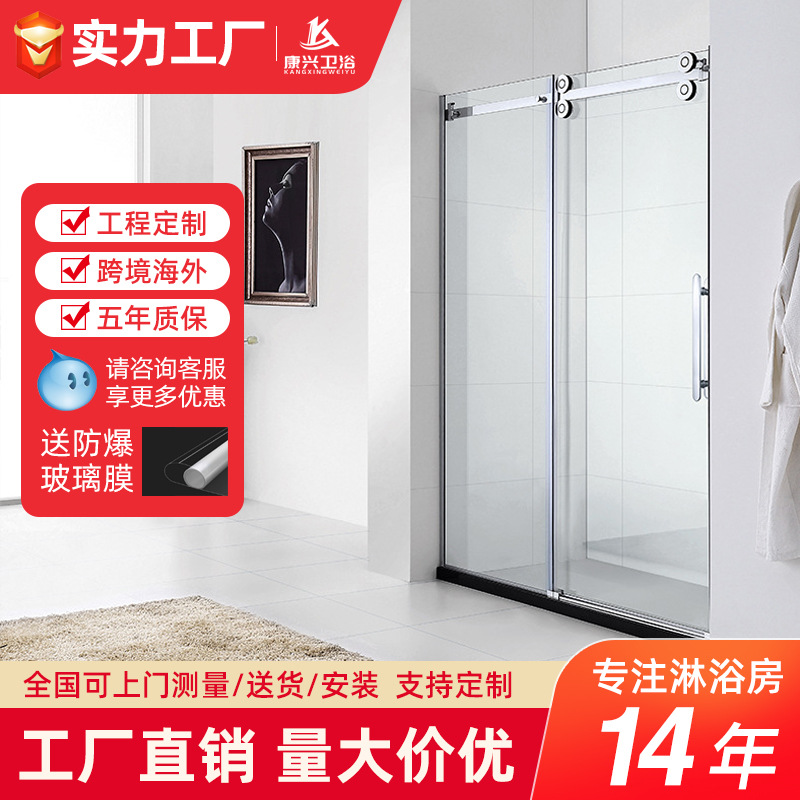 Jinrangxing grosir kamar mandi keseluruhan selebriti Internet rumah tangga bingkai sempit kaca kamar mandi pintu geser ganda partisi kamar mandi
