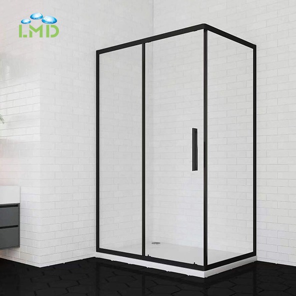 Kamar mandi persegi minimalis Modern, ruang mandi kamar mandi pemisah basah dan kering bingkai kaca sangat sempit hitam