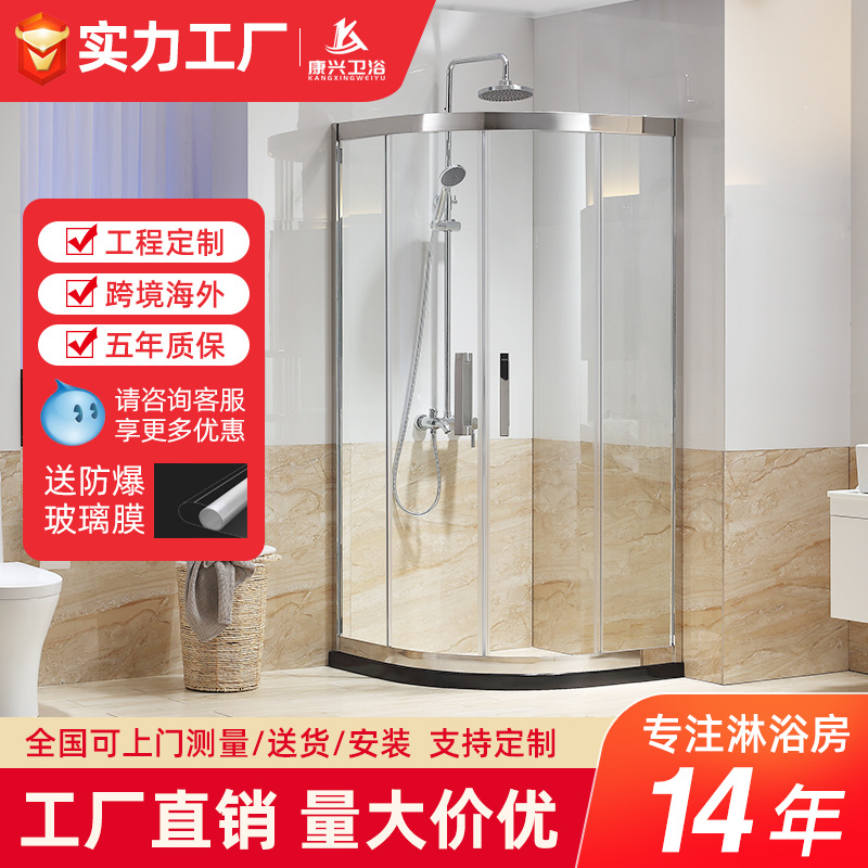 Grosir Pabrik kamar mandi dekorasi rumah kelas atas sederhana keseluruhan bentuk kipas busur kamar mandi kaca baja tahan karat partisi mandi