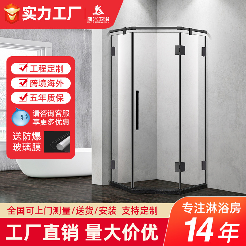 Pintu geser berbentuk berlian Jinkangxing, desain sederhana dan minimalis, kaca berbingkai ultra-sempit untuk pemisah ruangan kamar mandi kering dan basah.