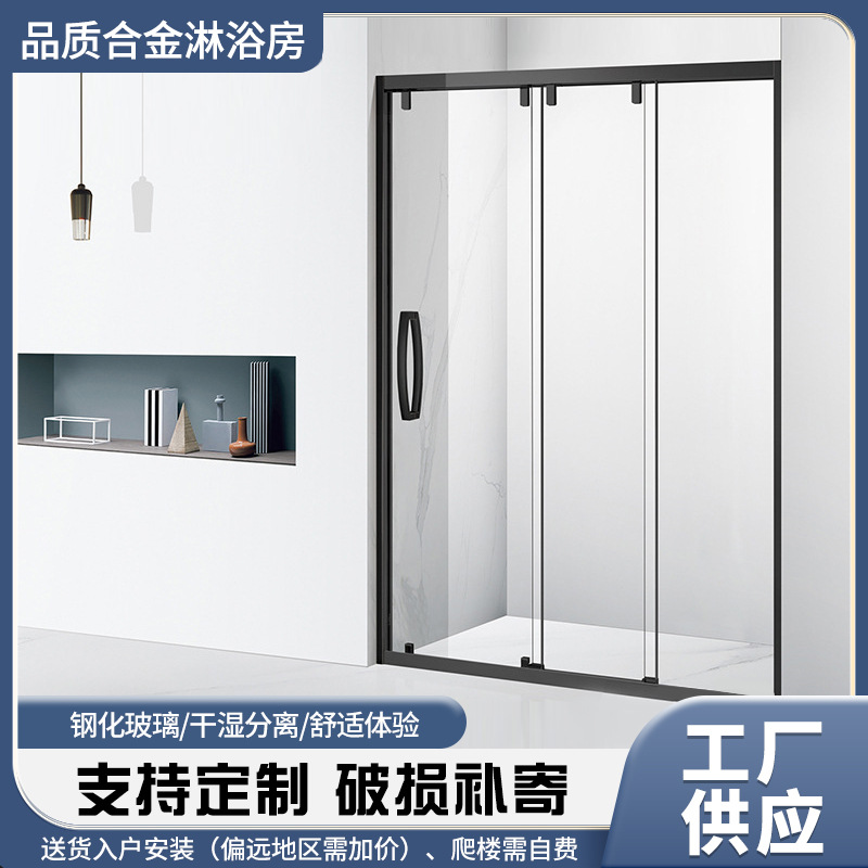 Pintu partisi kamar mandi satu baris, pintu Pancuran kaca baja antikarat, pintu geser, pemisah basah dan kering, ruang mandi kamar mandi
