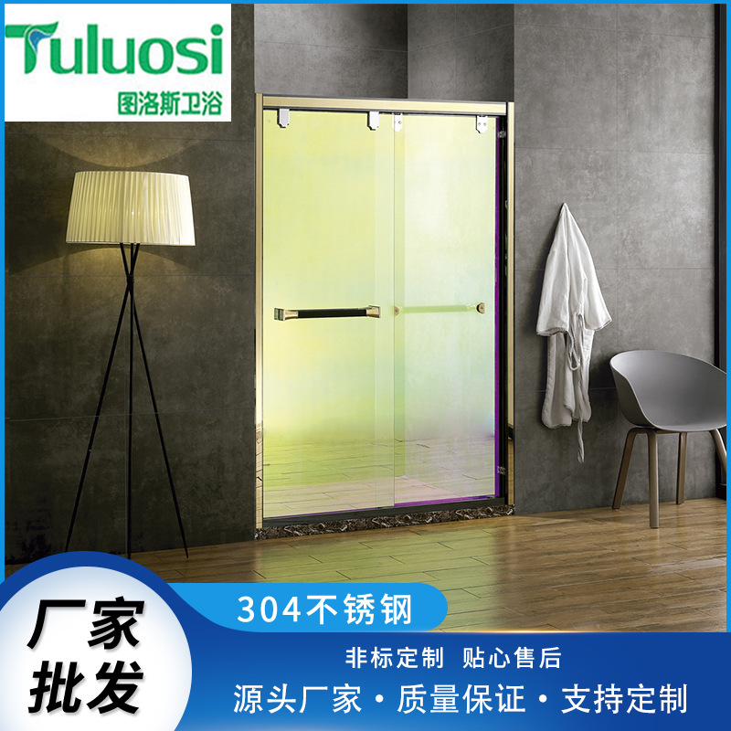 Shower room stainless steel kamar mandi, shower room warna tempered glass partisi emas satu berbentuk