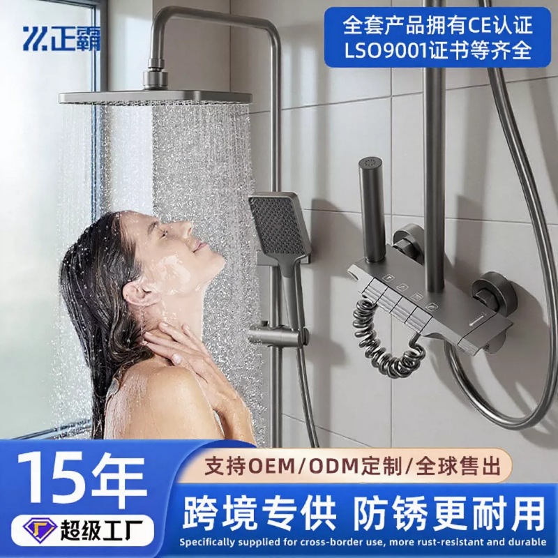 Setelan kepala pancuran hitam, perlengkapan pancuran hujan mengangkat tembaga rumah tangga, pipa suhu konstan kamar mandi bertekanan