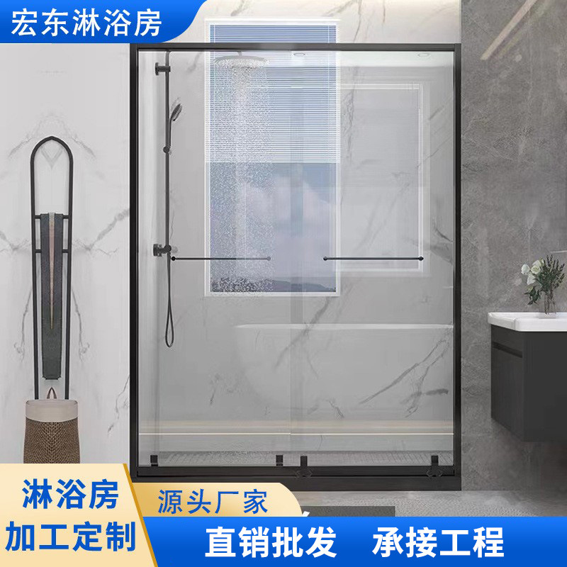 Grosir Pabrik kamar mandi hitam sederhana satu baris layar kaca kamar mandi partisi bisu kustomisasi kamar mandi