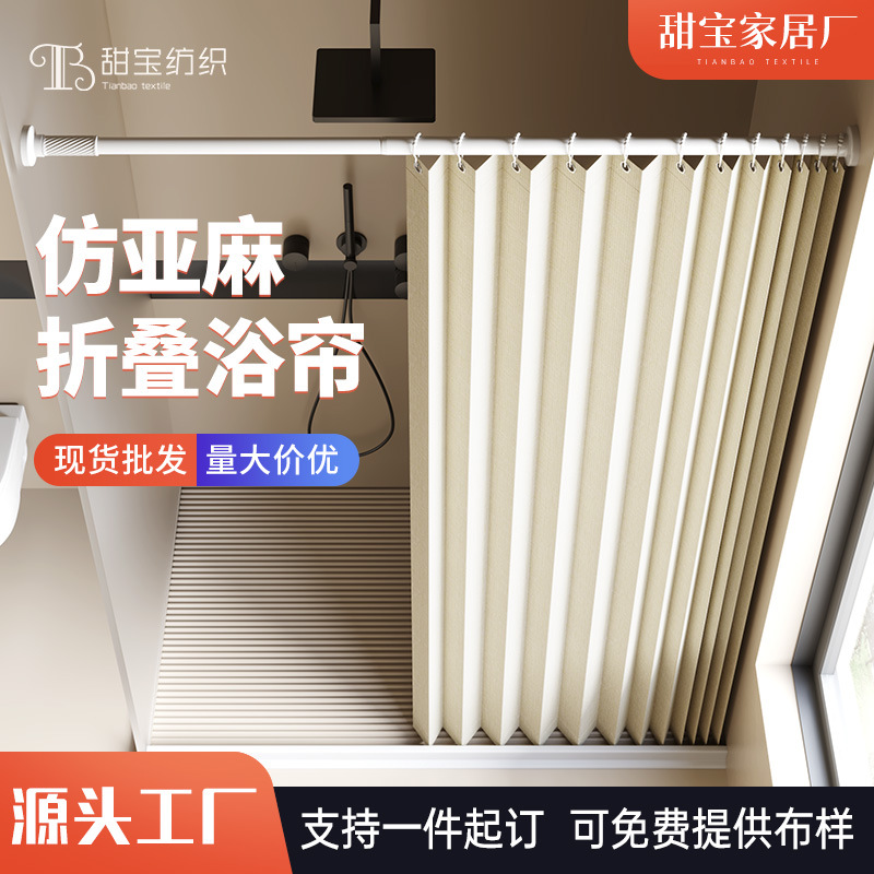 Tirai mandi lipat kamar mandi, tirai kamar mandi tidak terlihat dipertebal bebas lubang, gorden partisi tahan air kamar mandi