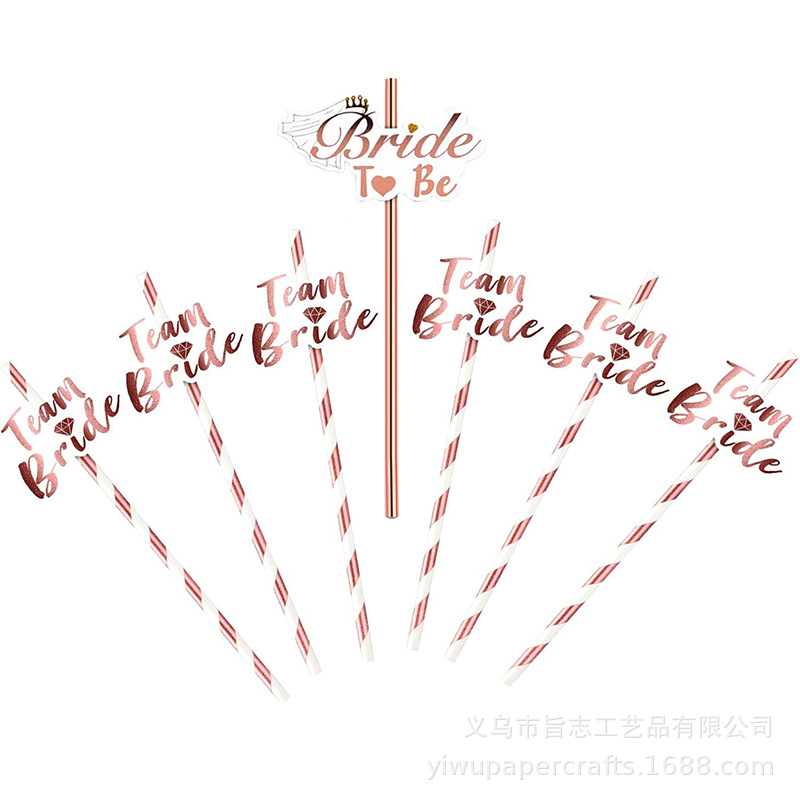 Team Bride Sedotan Emas Mawar Bride to be Bride Pengiring Pengantin Kelompok Shower Pesta Pernikahan Setrika Emas