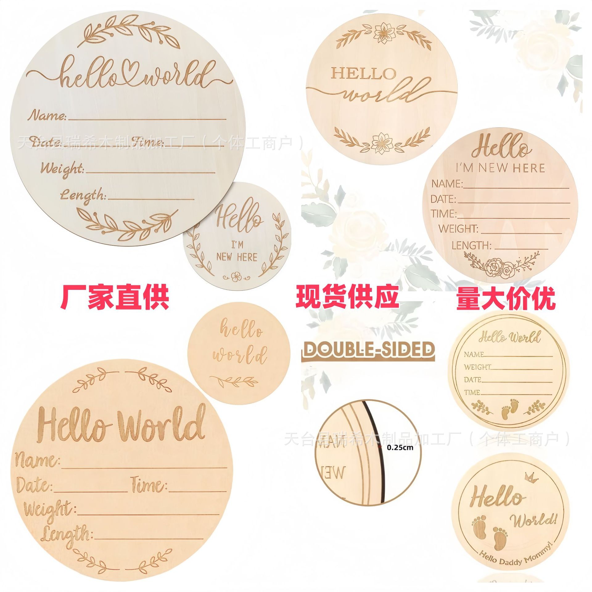 Amazon Hot Sale Kelahiran Baru Lahir Dua Sisi Pengumuman Merek Kayu Nama Merek Rumah Sakit Shower Hadiah Pembibitan