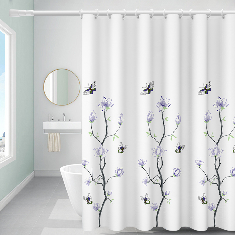 Tirai mandi tahan air poliester bunga potongan pasokan lintas batas kain tirai mandi hotel kamar mandi tahan air tahan jamur Amazon grosir