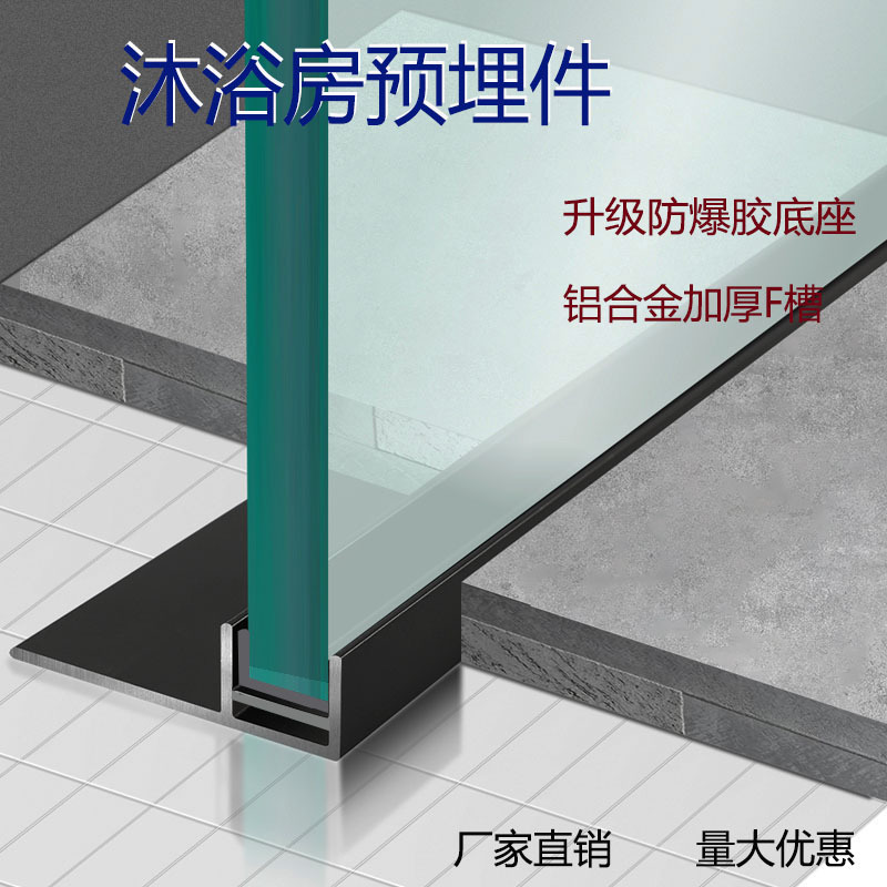 Slot kaca aluminium Aloi ruang Pancuran tipe f bagian Tertanam kamar mandi tanpa bingkai partisi kaca berbentuk U slot tunggal tepian