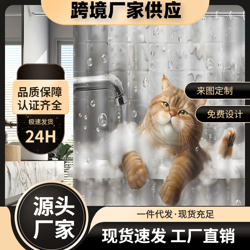 Temu lintas batas menyediakan 1pc kucing lucu di kamar mandi mandi mandi shower hewan bertema kain poliester
