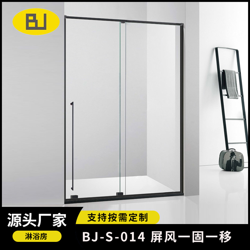 Kamar mandi shower kaca, Matte hitam tertutup ledakan tahan satu garis modern sederhana ganda pintu dapat bergerak