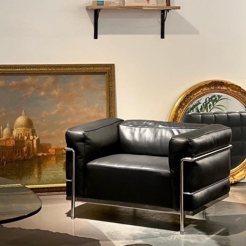 Corbustier sofa Lc3, sofa Nordik sederhana bauhuan ruang tamu studio santai kulit nyaman