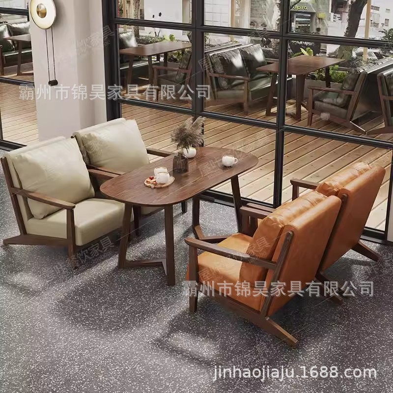 Kayu Solid Retro Cafe Meja dan Kursi Kombinasi Buku Bar Clear Bar B & B Restoran Toko Teh Susu Sofa Kursi Kartu Resepsionis Komersial