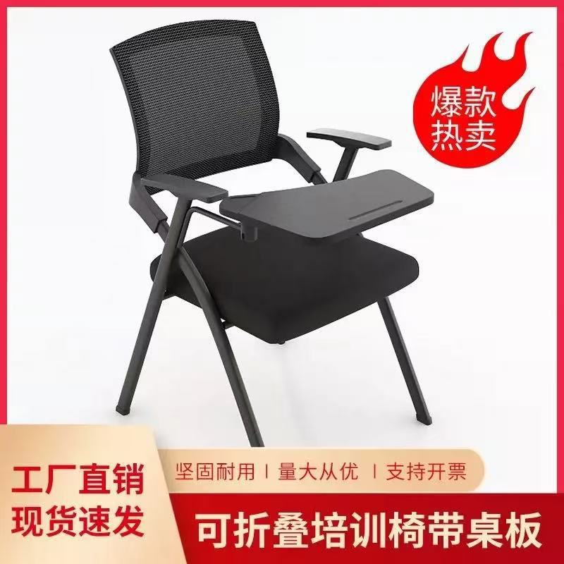 Kursi pelatihan lipat dengan papan meja dan papan tulis, meja dan kursi terintegrasi untuk staf kantor, kursi rapat, kain jala, ergonomis.